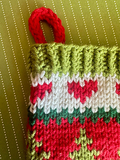 Un clásico de las fiestas, tejido con dedicación y espíritu navideño. Este calcetín tipo bota se trabaja en tejido plano o circular, con una puntera de un solo color y un talón de última hora.
