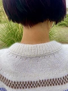 Caldera is designed for a comfortably relaxed fit and an elegant, everyday silhouette. Worked seamlessly in the round from the top down, it allows you to try it on as you go and adjust length to your preference. The slightly raised back provides a flattering and comfortable fit, while the refined ribbed collar, cuffs and hem give the garment a polished, tailored finish.