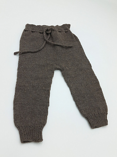 These baby pants are worked in the round from the top down, in stocking stitch.