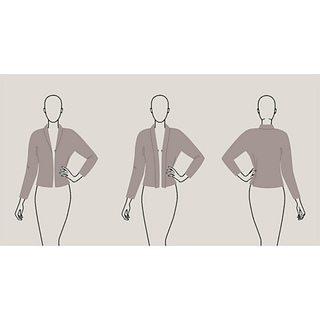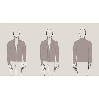 Proceed from the top downwards without seams, beginning from the back of the integrated shawl collar and simply working the components onto each other. Front edges may be worked either to meet at the centre or to overlap. Body measurements may be adjusted during construction if necessary.