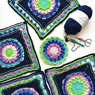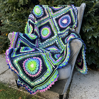 This blanket is a vibrant and cozy design made from 12 colorful squares using Hobbii Horizon and Kind Feather yarn.