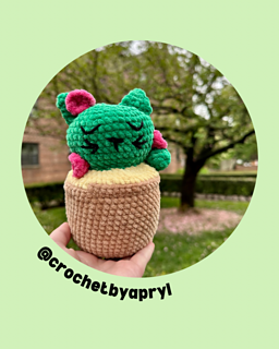 This is Callie, the Cat Cactus! She does involve some sewing, but is the perfect project for a beginner looking to take on a slightly bigger plush. She loves napping and laying in the sun. Make sure to give her lots of love so her flowers bloom!
