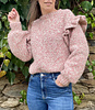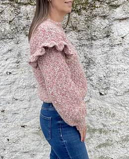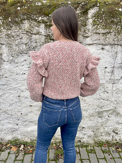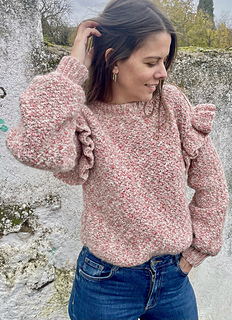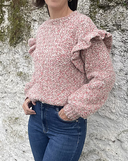 Este patrón es sencillo de realizar, perfecto para tejedoras con conocimientos básicos a intermedios. La estructura consta de dos piezas rectas que se tejen de abajo hacia arriba. Luego se unen por los hombros y los laterales, dejando espacio para el cuello y las sisas. Una vez unidas las piezas, tejerás los volantes de las mangas, el elástico de la cintura y el cuello.