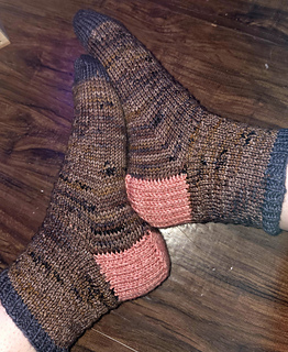Yardage/weight varies between different DK weight yarns, so if you are using yarn with a different yardage/gram ratio, make sure to calculate based on the yardage, not the weight. I have also indicated how much CC is used specifically for the heel in case you wish to switch the heel to MC, or increase ribbing length, etc.