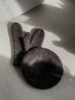 The 1x1 ribbed set is knitted in a flexible rib with a tightening effect to offer a snug fit and warmth. The mittens are worked in the round from the wrist to the fingers, with some invisible increases to form the thumb.