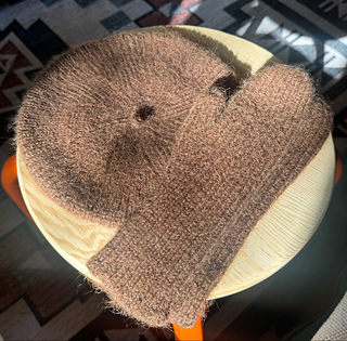 The mitten’s end is then worked with some decreases to form a rounded finish. The beret is worked from the bottom up, with a series of invisible increases and decreases to shape the beret.