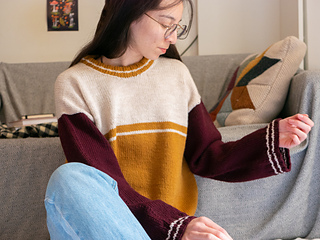 Le Campus Days est un pull à l’esprit sportif et vintage, tricoté du haut vers le bas, en rond et sans coutures. Il utilise 3 couleurs, ce qui le rend amusant à tricoter et permet d’exprimer sa créativité. Sa construction simple en fait un patron accessible aux débutants. Deux options de manches sont disponibles : une plus large et une plus ajustée.