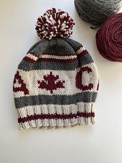 This slouchy beanie is a toasty, thick, colourwork project with a vintage look and a nod to classic hockey toques. This hat will fit most adults.