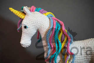 The stitches are pretty basic, but it could be a bit tricky to crochet since the unicorn is almost seamless, and portions of the shaping are made up using the stitches in a rather unconventional way.