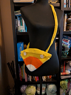 There are two patterns in this PDF, a candy corn purse and a candy corn Trick or Treat bag.