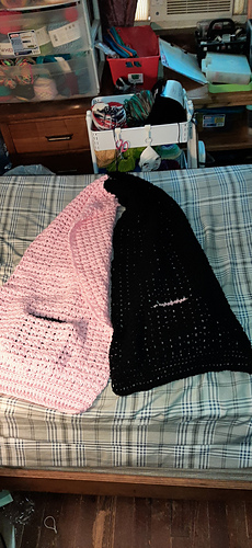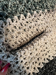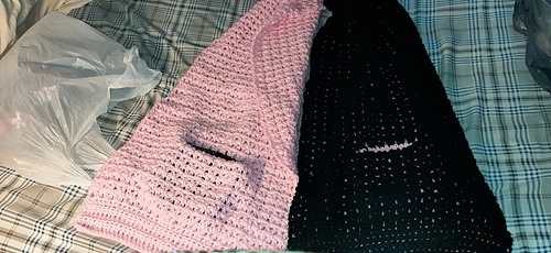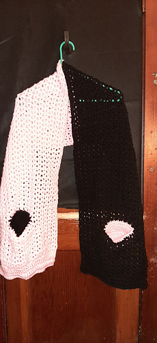 This pattern comes with 3 different sizes wide, small and scarf. The pockets are crocheted onto the shawl. I always had a problem sewing my pockets on even and straight. You make this pattern in 2 panels and you can either graph (join as you go) or sew the 2 panels together. This could be a no sew pattern.