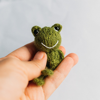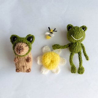 This knitting pattern includes instructions for making a Frog Set designed for Tiny Capybara.