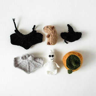 This knitting pattern includes instructions for making a Halloween Set designed for Tiny Capybara.