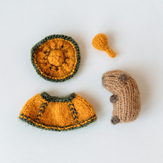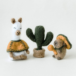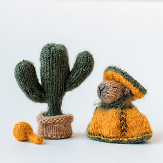 This knitting pattern includes instructions for making a Mexican Set designed for Tiny Capybara.
