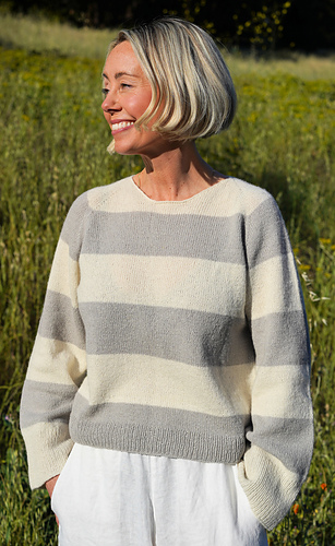 Cara is knit in Stockinette Stitch with or without a striping pattern from