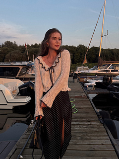 Referential tension gauge: 25 sts * 30 r = 1010 cm in “stockinette stitch” using 3.5 mm needles.