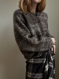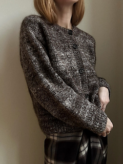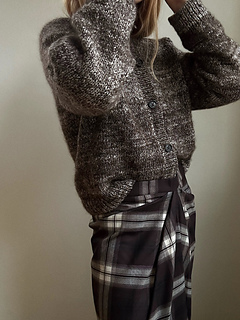Cardigan No. 9 is a classic, slightly oversized cardigan featuring distinctive saddle shoulders, which which add character and catch the eye. The back and yoke are shaped with short rows to ensure a good fit. The sleeves are wide at the top and taper towards the wrist, with the sleeve cap shaped using short rows. The neckline consists of a double-knitted section and a ribbed edge, adding an extra touch of elegance to the cardigan.