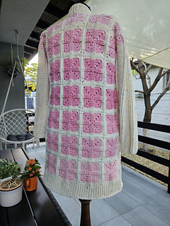 I invite you to work with me on this wonderful cardigan that is adaptable to any size.