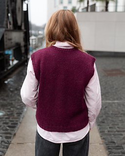 The cardigan is worked from the top down. First, the back is knitted, then the front pieces, and finally the facings and cuffs.