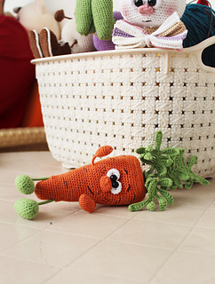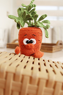 Crochet CARROT toy pattern is in PDF format in English (US terms), German, and Dutch languages.