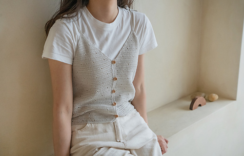 This bustier-style crochet top features airy eyelet patterns made with Casaria yarn. It looks stylish layered over a T-shirt or a cotton tank top. The tie straps allow for easy length adjustment and add a cute accent to the design. Due to the nature of the stitch pattern and construction, it is available in one size only. Create your own beautiful crochet garment with the detailed charted pattern.
