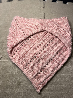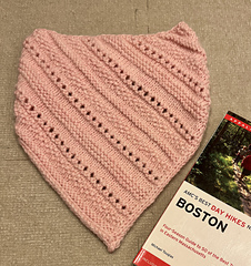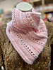 Cowl features garter st setup, followed by repeating Trail Motifs (featuring garter or stockinette between eyelet, moss, or ridge textures) complimented with i-cord framing.