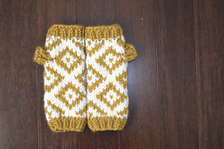 For years I’ve thought the Aztec black and white rug I have would make a great knitting design, so I decided to test it out on some fingerless mitts. What I ended up with was sheer perfection!