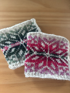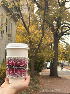 The Cassiopeia Cup Cozy is a fair-isle cup cozy meant to fit a cardboard or reusable cup. It’s written for magic-loop style knitting, but you can also use 9” circular needles or double-pointed needles if you prefer.