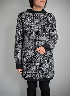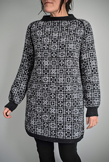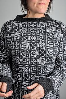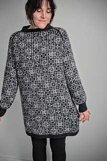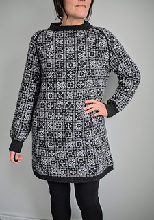 There aren’t a lot of Sanquhar sweaters out there and I wish there were more! With this desire, I made a Sanquhar inspired (and chess board inspired) raglan. I designed this as a tunic, but since it’s top down, you can easily stop at any length that suits you.