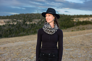 The sample cowl is knit in the colorways Crossroad (C1) and Offline (C2).