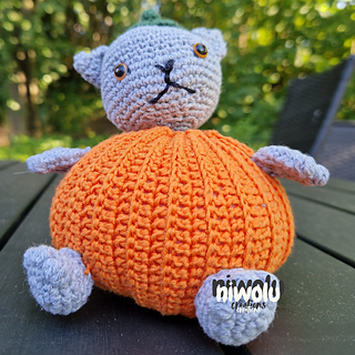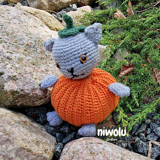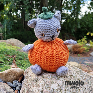 This little cat is ready for Halloween in her charming pumpkin costume. If you want her trick-or-treating at your house, look no further. The crochet pattern is right here!