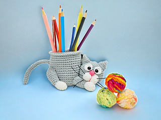 Hey guys, I’m the coolest pen holder you’ve ever seen! Why? Because I look like a super cute cat! With my two different arrangements, you can always set me up just the way you like it. And hey, not only that, I’m also super practical! My container is double-walled crocheted, so I can hold your pens or even crochet hooks securely and stable. Whether on your desk, as cute plant decor, or simply as a gift for a cat lover – I’m versatile and guaranteed to bring good vibes!
