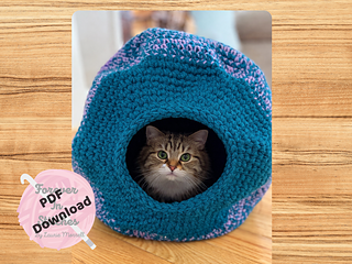 Create a warm and stylish retreat your cat will love! This PDF crochet pattern is designed to help you make a thick, sturdy, and beautifully structured cat cave using three strands of worsted weight yarn held together.