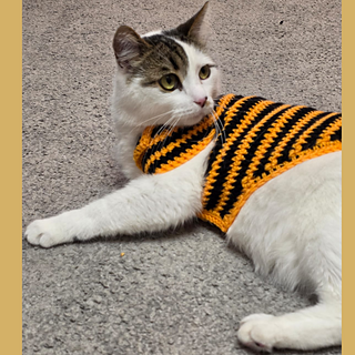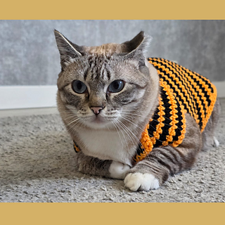 This easy crochet pattern allows you to create a cozy sweater in six sizes — perfect for thoughtful gifts or keeping your kitty warm on chilly days.