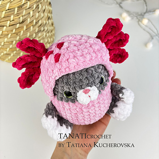 Cat the AXOLOTL – size 13,5 cm (5 in), if using bulky weight yarn (Bulky (7 wpi), 5: Bulky).