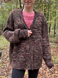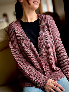 The perfect oversized, size inclusive cardigan for when you want the feeling of being wrapped up in a blanket all day but need your arms free to keep knitting! This v-neck cardigan features a half fisherman’s rib stitch pattern with 1x1 rib details on the cuff, hem, and button band. The cardigan has a drop shoulder construction and the stitch pattern provides a lot of drape for a very dramatic feeling shoulder. To help ensure you get the perfect fit, the instructions are written with a “mix & match” style for the body and sleeves. Feel free to knit the body a size 2, but the sleeves a size 4 to get a more fitted body and a looser sleeve.