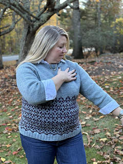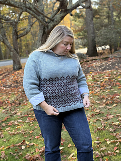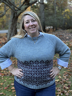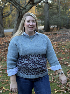 Cathedral is a top down raglan style sweater. With a crew neck, short row neck shaping and raglan increase details, this classic style sweater is spiced up with a stranded colorwork body. The body features a pattern inspired by leaded stained glass windows seen in cathedrals around the world. The main becomes the lead work, giving structure to the window pane design. It is equally beautiful reversing the placement of dark and light and would be lovely in any color.