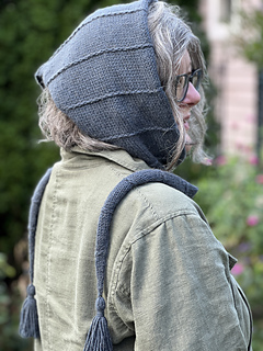 As an ode to my cats and fuzzy cattails, this scarf shape is a shallow triangle with two long tails that end with tassels. The scarf is worked from tail to tail (sideways) in stockinette stitch with