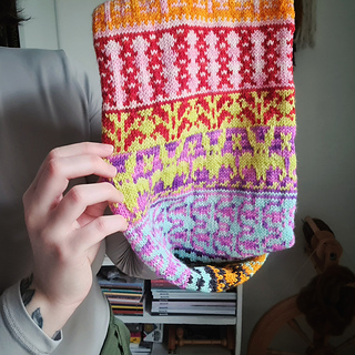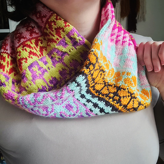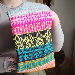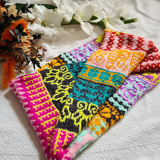 The Cecilia collection features 5 patterns : a cowl, a scarf, a hat, mittens and socks. It offers mix and match colourwork motifs for custom projects with floral, geometric and figurative designs.