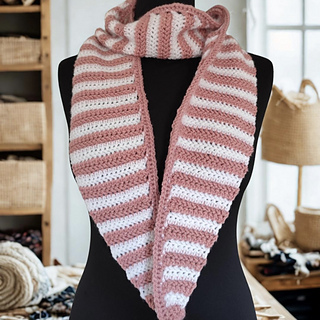 The Cecily Scarf is worked from tip to tip. You start by increasing until the scarf reaches its full width, then continue through the body section, where you’ll work an easy, repeating stitch pattern that’s wonderfully rhythmic and relaxing. To finish, you decrease again towards the opposite tip, creating a lovely balanced shape that drapes beautifully.
