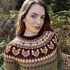 An optional short-row section after the yoke improves drape and neckline fit. A subtle colorwork band at the cuffs echoes the yoke motif, while the sleeves are gently shaped.