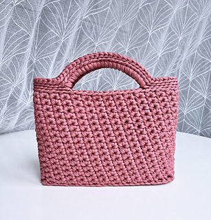 MATERIALS: The bag is made with 5-6 mm thick t-shirt yarn in dusky pink color, using a 8 mm crochet hook. You’ll need 219–273 yards (200–250 m), depending on the hook size and your personal tension.