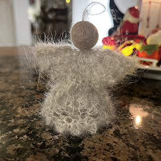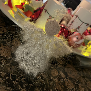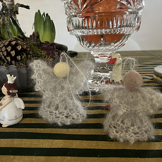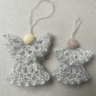Skøn juleengel let som et fnug hæklet i en rest blød mohair.