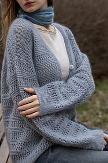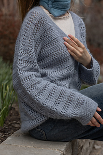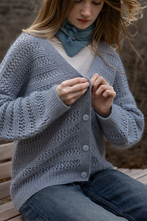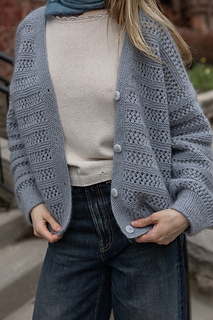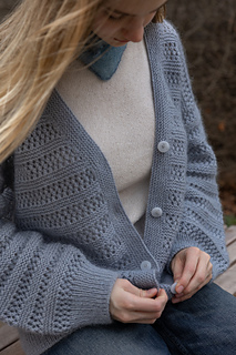 This v-neck cardigan is worked seamlessly from the top down. Firstly, back shoulders are cast on separately and short rows are worked to shape shoulders. At the same time, increases are made to shape the back neck. Shoulders are then joined together and back is worked to underarms. Fronts are picked up from back shoulders and neckline is shaped. The front and back are then joined and worked flat in one piece. Sleeve stitches are picked up around the armholes and knitted from the top down in the round. Sleeve instructions are written to use DPNs, however an alternate method of working small circumferences can be used, such as Magic-Loop, or a short circular needle for the larger sizes. Button bands are picked up around the front of the cardigan and worked back and forth in rows.