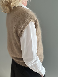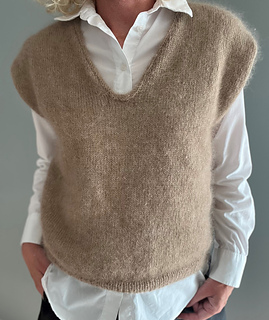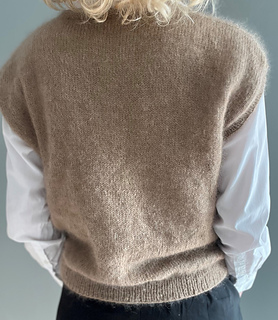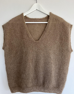 The Celsius Slipover is a soft and airy vest knitted top-down in stockinette stitch with two strands of silk mohair.