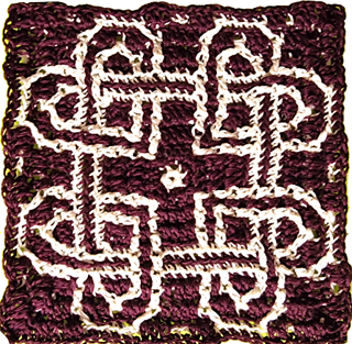 This pattern uses the 2-color Mosaic Technique in rounds (one color per round).