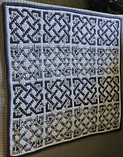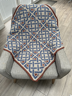 This is a digital pattern for overlay mosaic crochet completed in rows. The picture blanket measure approximately 88cm x 88cm when using a 3mm hook and DK Yarn. The blanket could be made larger or smaller by varying the number of repeats.