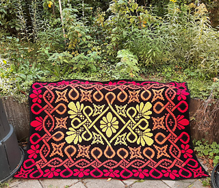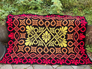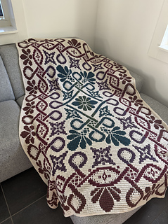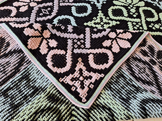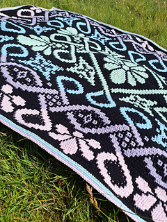 This blanket pattern is made to crochet in overlay mosaic crochet technique and is made from the center out.