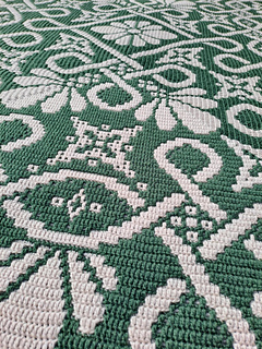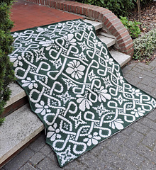 Dit patroon voor een deken is gemaakt om te haken in overlay mozaïek techniek en wordt vanuit het midden gehaakt.