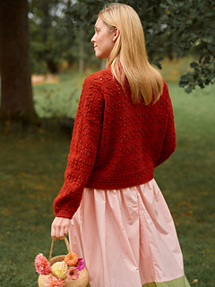 The sweater is knitted seamlessly from the top down in the Eyelet Stitch Pattern. It begins with the back, followed by each shoulder. Once the front and back are joined, the body is worked in the round and the hem is finished with a 1 x 1 Rib. Then the sleeves are knitted in the round, ending with cuffs in 1 x 1 Rib. Finally, stitches are picked up along the neckline to work the ribbed neckband. All sts are bound off using the Tubular BO method. Note! Use 2 strands of yarn held together throughout the pattern.
